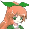 橙色长发,用带着绿色叶子的头绳扎成马尾,绿瞳。